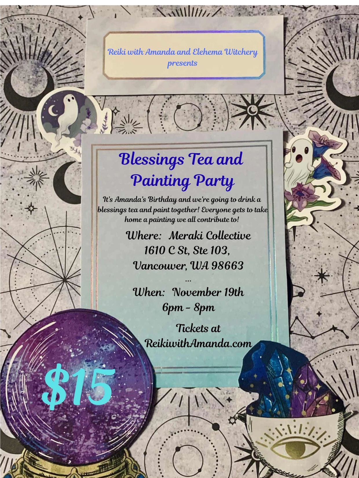 home a painting we all contribute to! This will also be our last tea of the year! Join us for a magical evening of community, blessings, and creativity!
